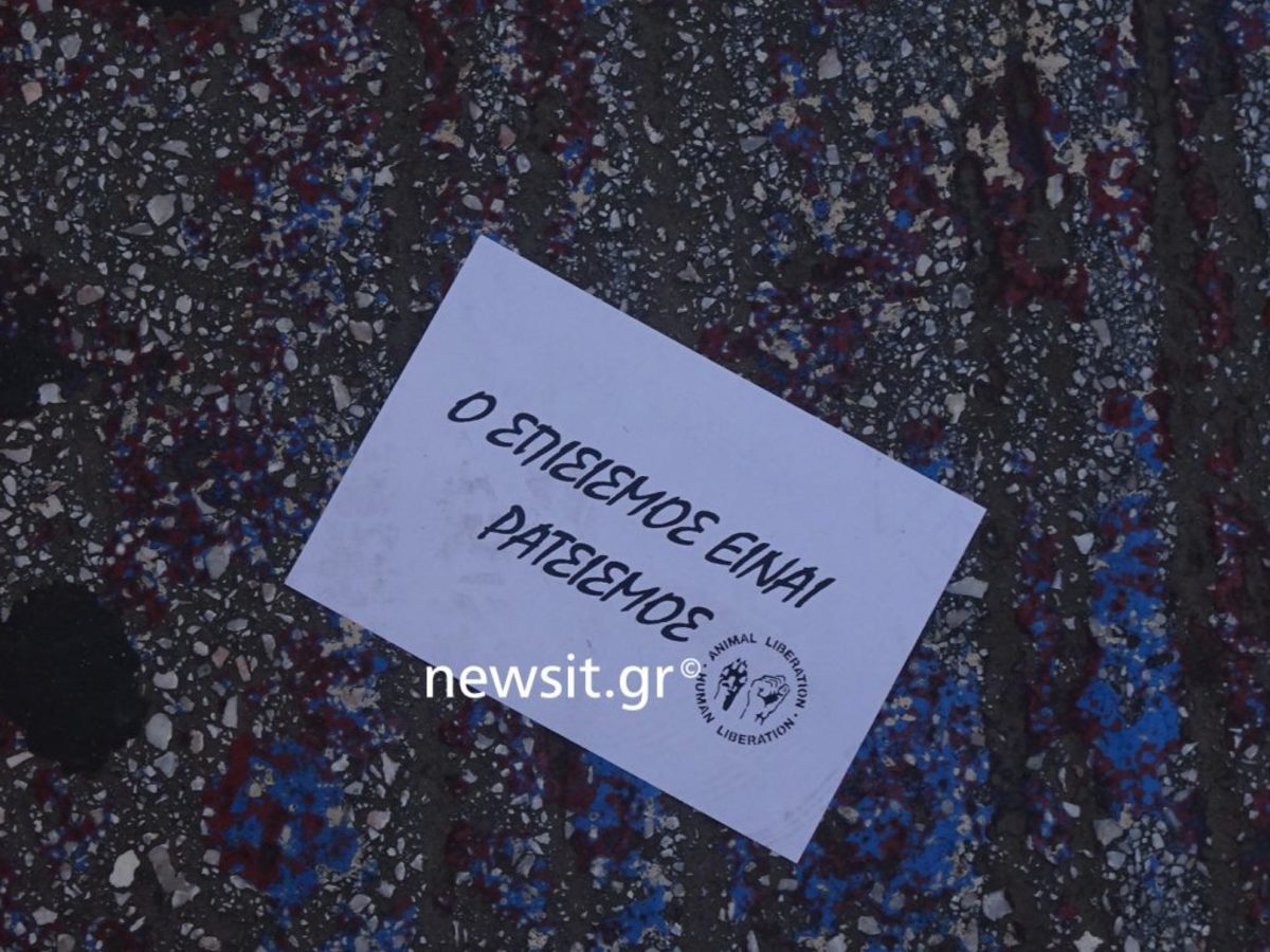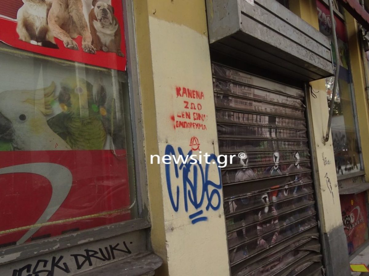 Με συνθήματα και πανό ξεκίνησαν πορεία από την Ομόνοια και πέρασαν από την οδό Αθηνάς, όπου έγραψαν συνθήματα με σπρέι έξω από pet shops.